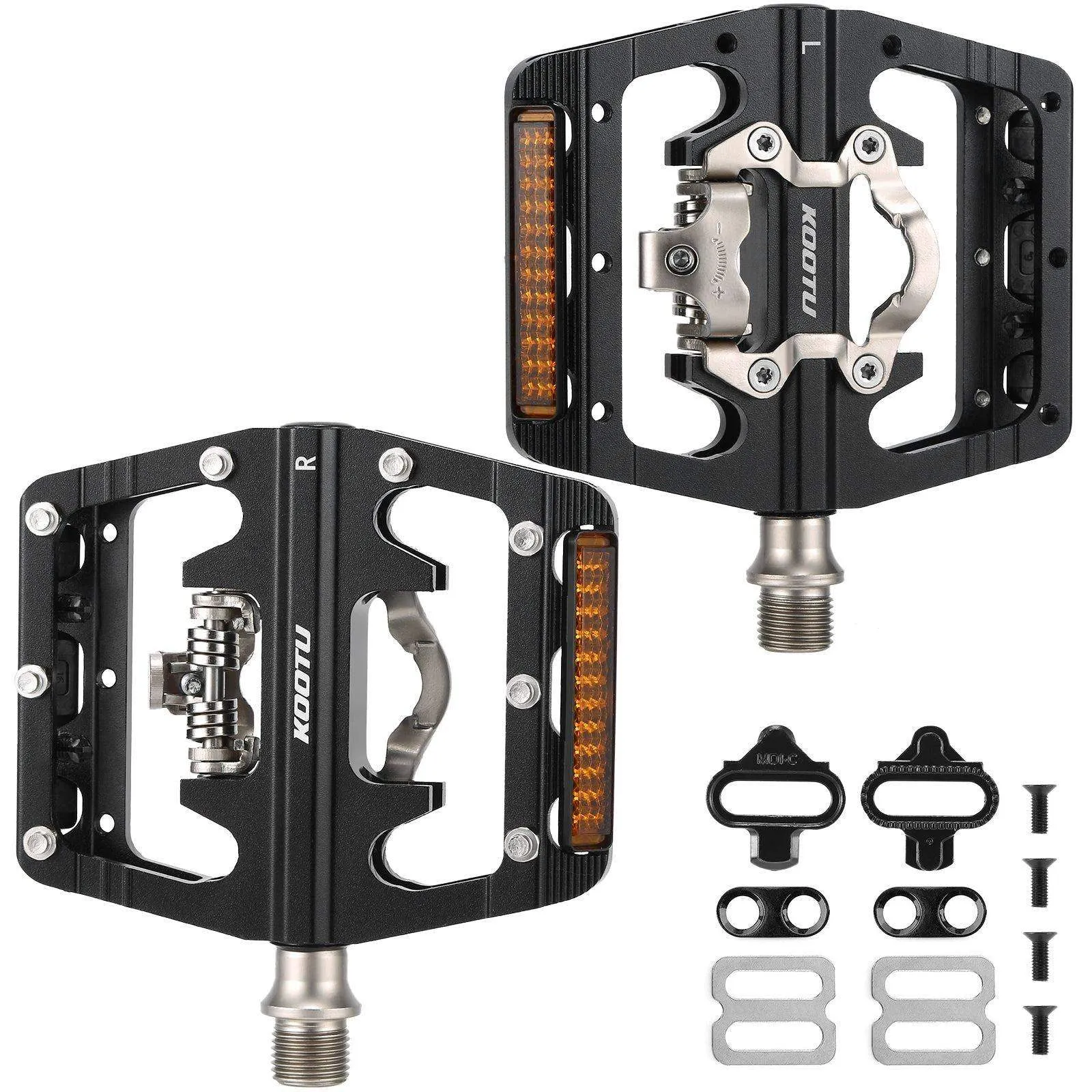 - Dual function, These Bike Pedals not only can ride with clipless shoes (come with Gasket*2), compatible with all Shimano SPD MTB bike pedals system; The other side, as normal aluminum pedals with cleats, perfect for road, mountain, MTB, touring, trekking Bikes.