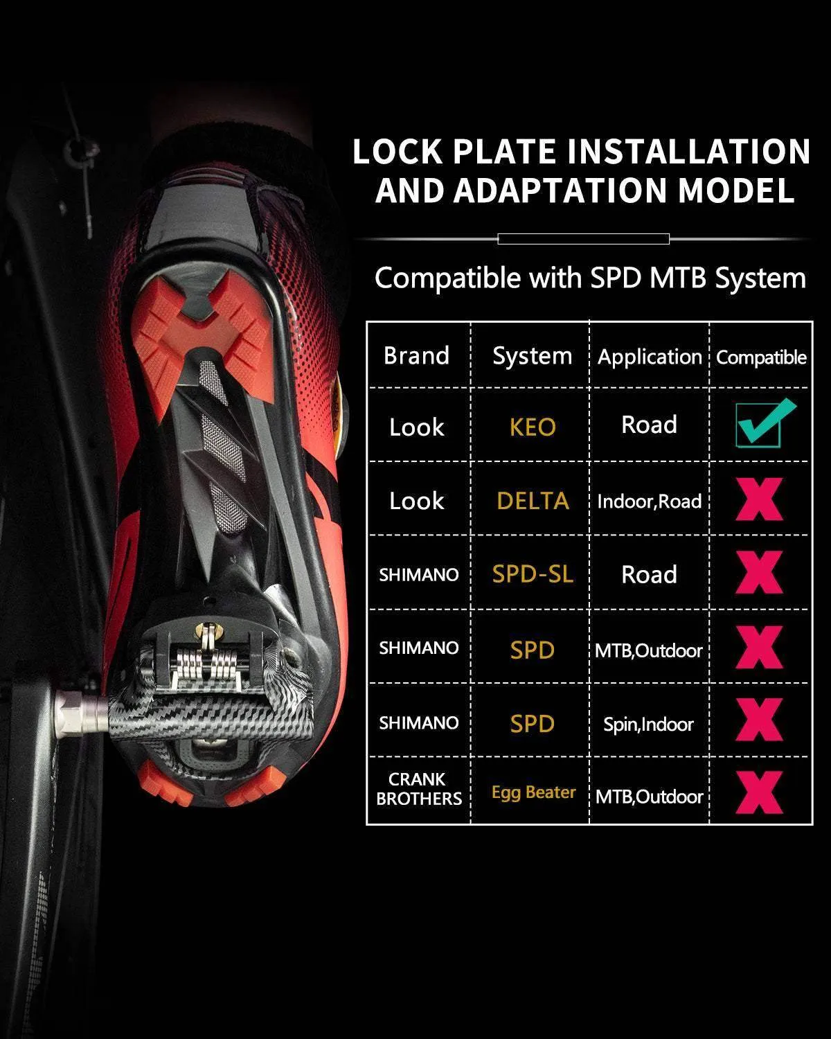 - Standard size:these road bike pedals are compatible with 9/16" cranks. suitable for road bikes,spin bikes. compatible with look keo system.